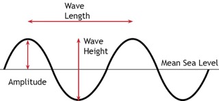 The amplitude measures the waves height from the sea level, to the crest (top) of the wave.